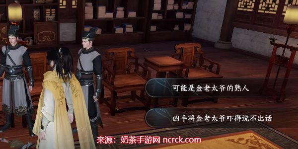 7、遇见白大哥:与陈德风交流完毕后,继续前进,你会遇到一个人(剧情发展)。这个人正是白大哥,再次与他对话后剧情结束。然后前往大厅调查金老太爷的死因。