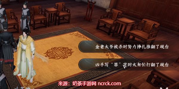 8、调查尸体和砚台:调查金老太爷的尸体后,选择第一个选项,继续调查砚台时选择第二个选项。