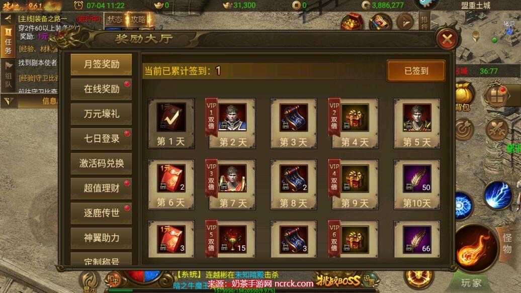 3、进入奖励系统后,你将看到一个“激活码兑换”按钮。请点击该按钮。