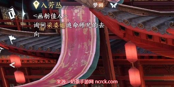 在任务树中点击梦回,任务将变成一个新的任务,继续前往找到梁婆娘进行询问(任务位置不变)。
