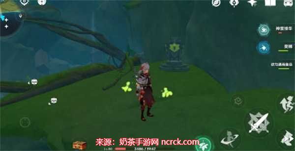 激活第一次机关:机关出现后,你需要按照仙灵的指引来到指定位置。携带草种子,并将其用于机关激活。请参考下图位置。