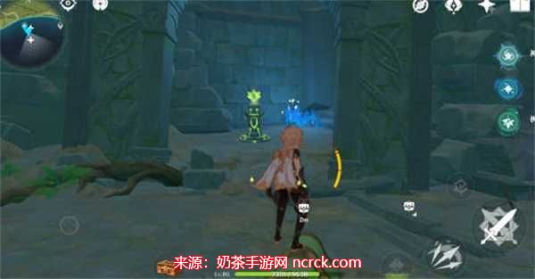 打开第一个元素方碑:在激活机关后,你会看到第一个元素方碑。使用草种子与之互动即可打开。