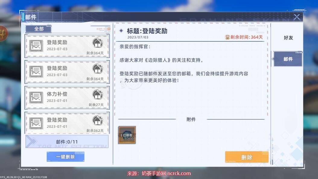 步骤四:兑换成功后,您可以进入邮件系统来领取您的奖励,包括源晶币、体力以及各种道具。