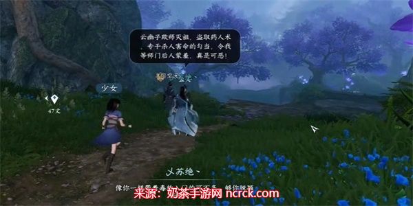 在对话中,你会得知这位少女正前往拜师的路上。你需要迅速赶到她所在的位置,阻止她继续前行。与她对话,并告诉她她走错了方向。