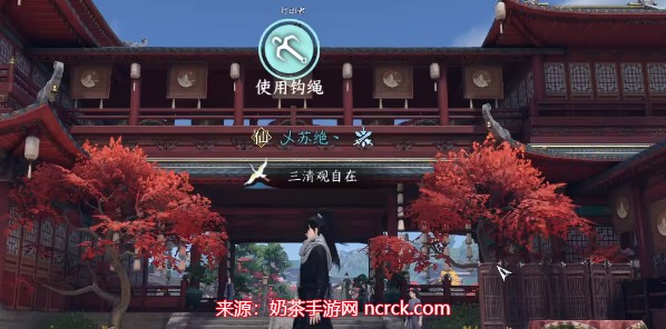 4、接下来,利用几棵树和钩绳技能,我们可以提前到达城墙上的位置。