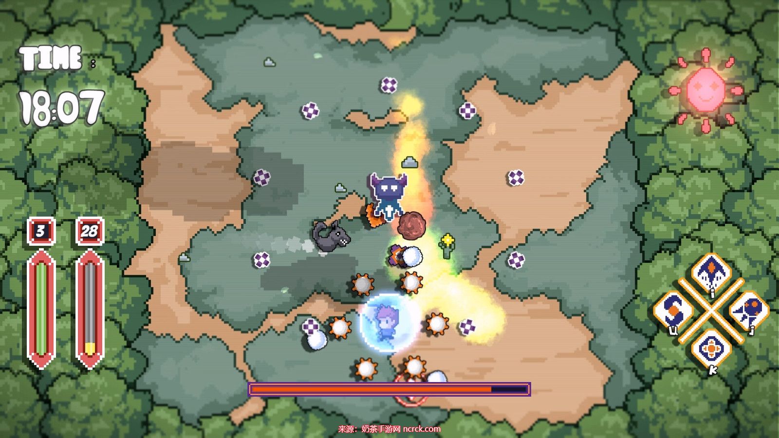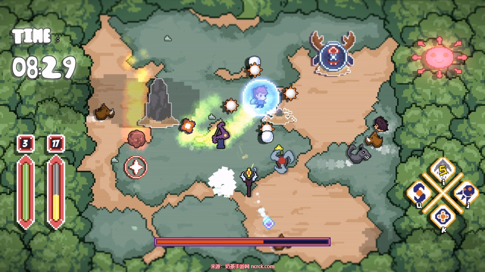 1、敌人介绍: 逃离恶魔岛的敌人是随机生成的,白天和晚上的怪物种类也不同。此外,游戏还会不断增加新的BOSS,每个BOSS都有独特的技能,为游戏带来更多的挑战和乐趣。