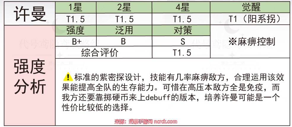 在使用技能时,许曼会选定敌方一位目标,造成输出伤害的同时,有一定几率使目标陷入麻痹状态。麻痹状态将限制敌人的行动回合,而麻痹几率会随着许曼的等级提升而增加。因此,如果想充分利用许曼的控制技能,建议在培养许曼的同时不断使用,以获得最佳效果。