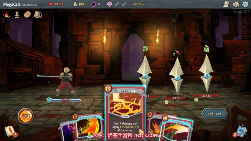 旋风斩:这是战士流派中最厉害的AOE(范围攻击)牌之一,配合加劲的牌和加劲的遗址,可以在一回合内击杀整个局面。