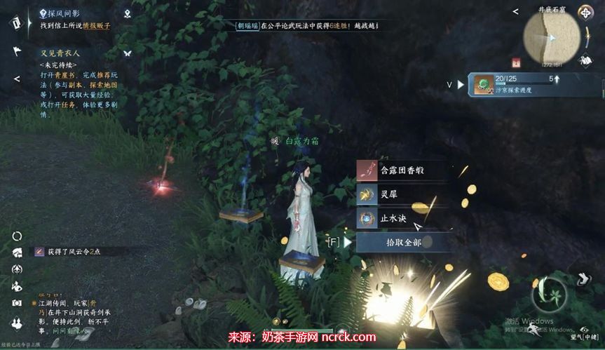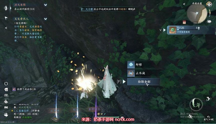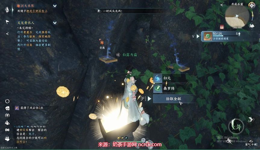 查看石壁上的字(1263,1486),观看动画,会有四个可探索的点,依次探索,路上还会有一些箱子,不要错过,箱子的坐标在下面