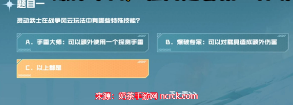 1、问题:灵动武士在战争风云玩法种有哪些特殊技能?