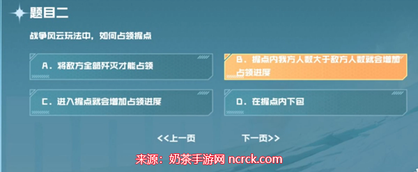 答案:选择B选项,据点内我方人数大于敌方人数就是增加占领进度