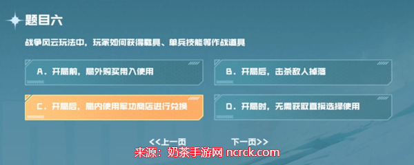 答案:选择C选项,开局后,局内使用军功商店进行兑换