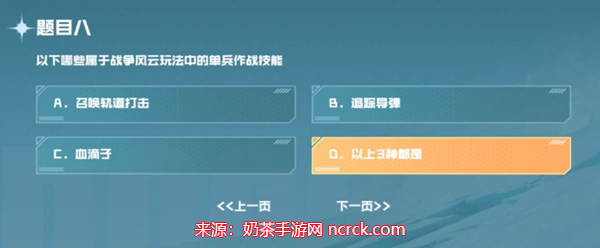 8、问题:以下哪些属于战争风云玩法中的单兵作战技能?