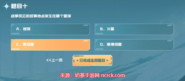 10、问题:战争风云的故事地点发生在哪个星球?