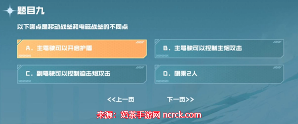 9、问题:以下哪点是移动战垒和电磁战参的不同点?