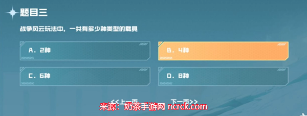 3、问题:战争风云玩法中,一共有多少种类型的载具?
