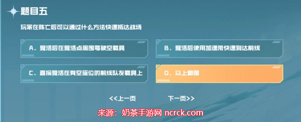 5、问题:玩家在阵亡后可以通过什么方法快速抵达战场?