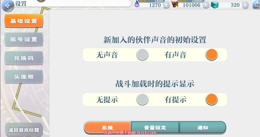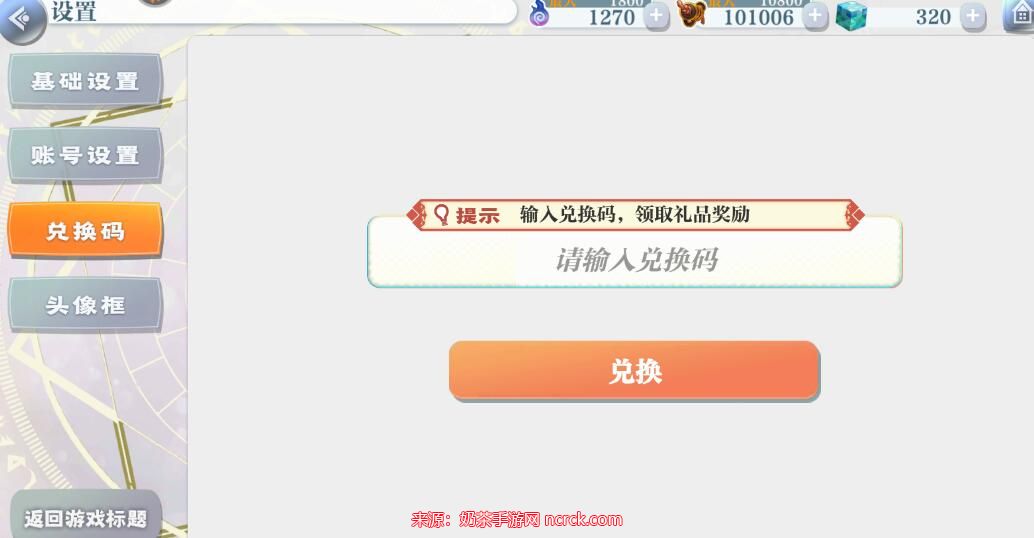 2、进入游戏的设置界面,您会看到兑换码选项。