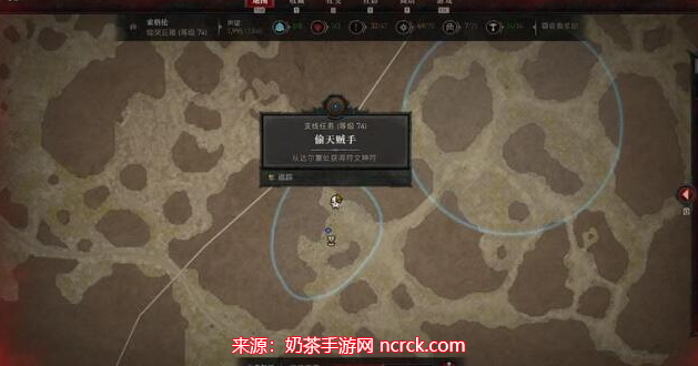 在布雷斯塔传送点附近,您可以找到偷天贼手支线的起始点。当您接近该区域时,会触发任务的开始。此时,一位名叫梅琳的NPC会向您求助,她告诉您一个叫达尔塞的窃贼偷走了她的治疗神符,这个神符对于治疗她的虚弱母亲非常重要。