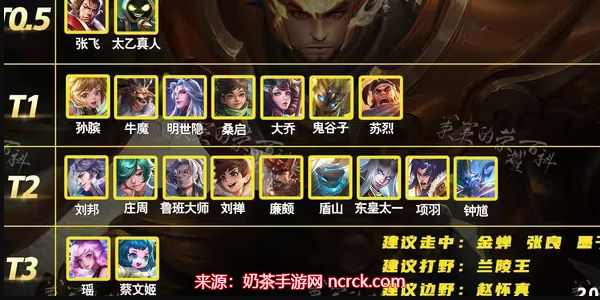 T3:牛魔、张良、刘邦、姜子牙、桑启、东皇太一。