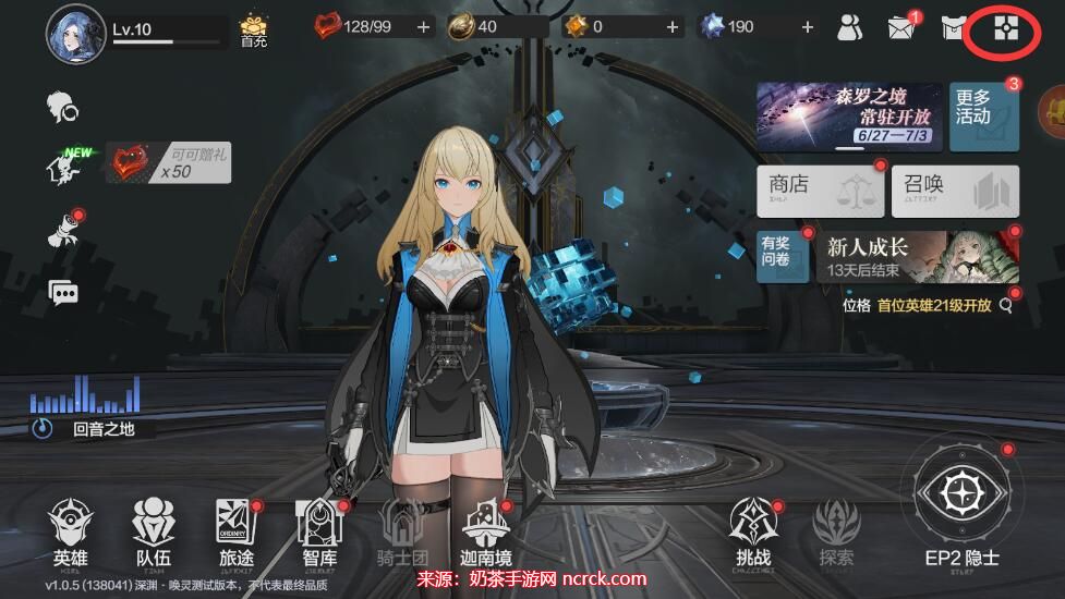 1、在彼界手游的主界面,点击菜单图标,打开菜单选项。