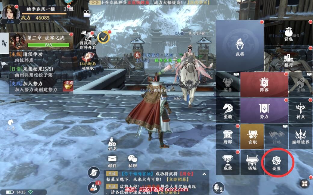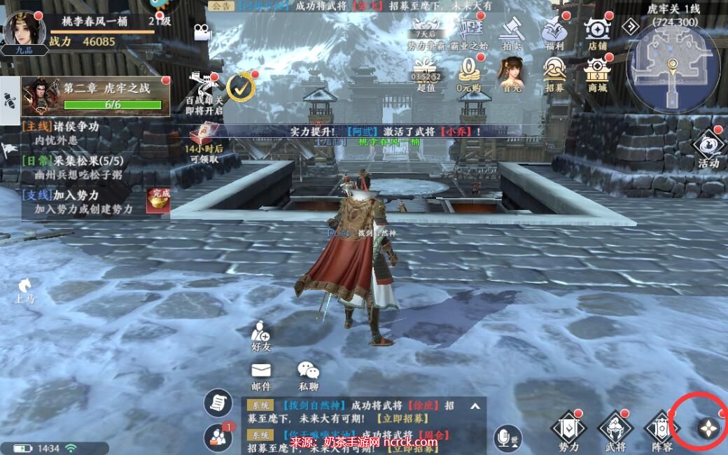 1、打开极无双2手游,并完成引导任务后,点击游戏界面的右下角菜单选项。