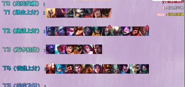 T3:潘森、酒桶、卡莎、蛮王、剑豪、猴子、泰坦、男枪、刀妹、皇子、杰斯、狼人、阿卡丽;