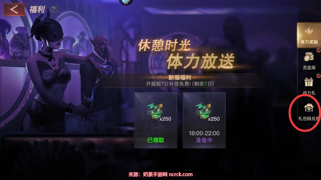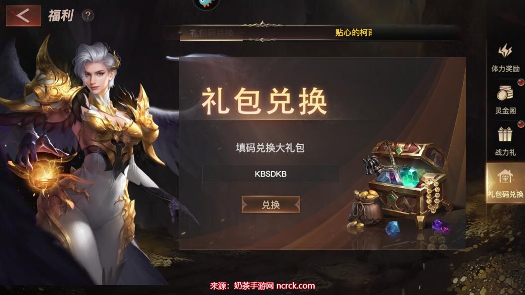 2、点击福利界面中的右侧按钮,即可进入礼包码兑换页面。