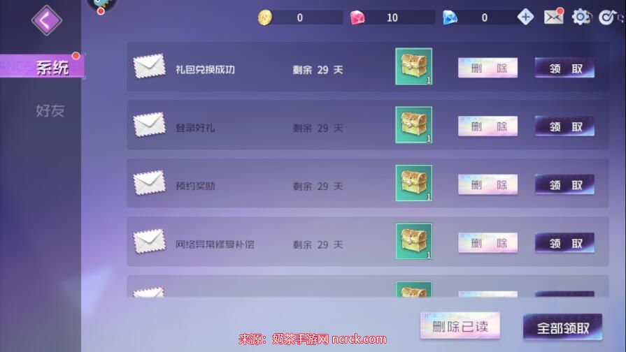 5、进入邮件中心后,点击"全部领取"按钮即可领取奖励。