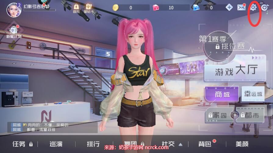 1、首先,进入舞动星闪耀游戏并完成引导任务,进入游戏主界面后,点击右上方的配置按钮。