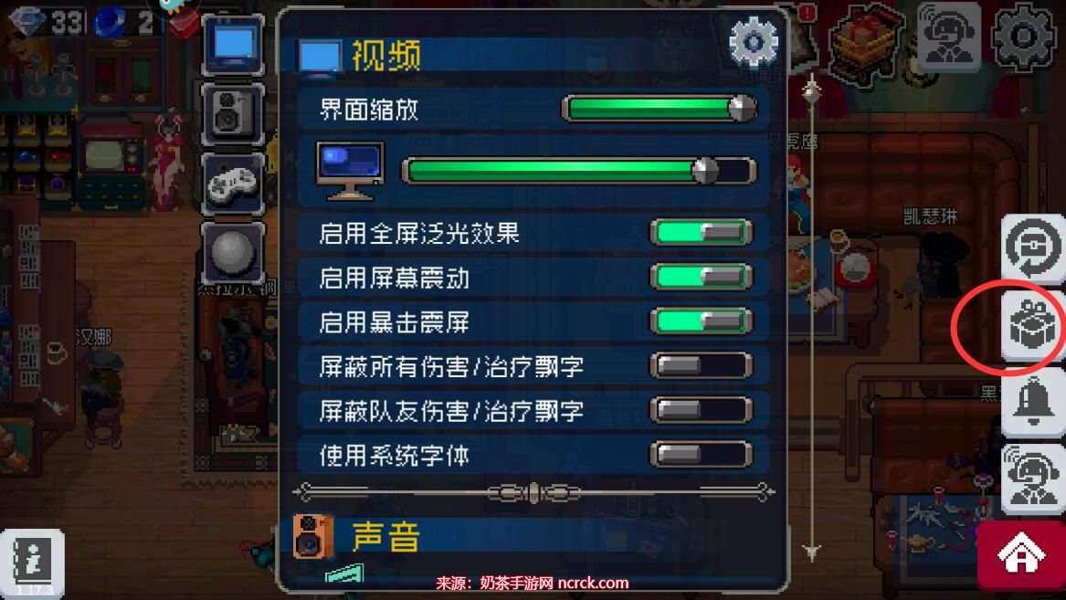 2、在设置界面中,你会看到礼包的图标,点击它。