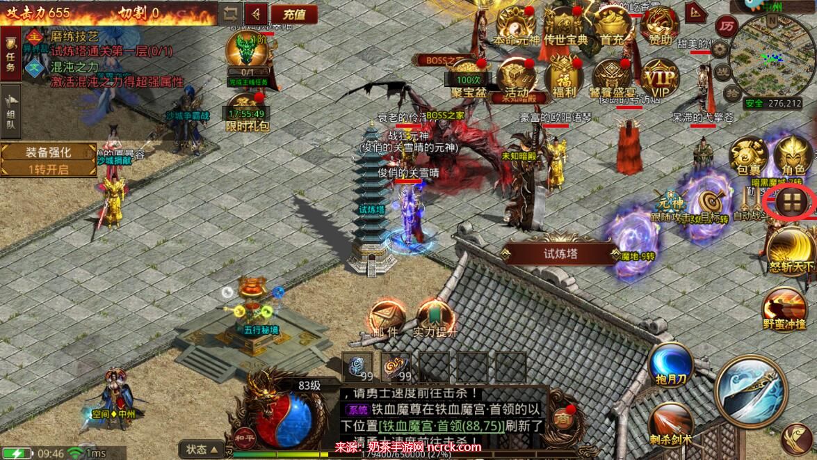 1、在进入无双屠龙游戏主界面后,寻找右侧的菜单图标。