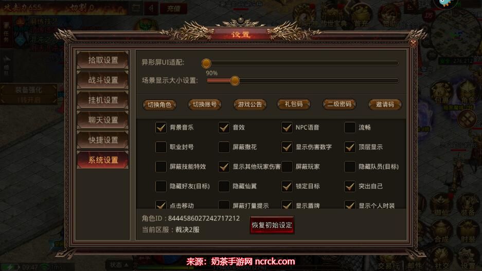 3、进入游戏设置界面后,点击"系统设置",您将看到一个"礼包码"按钮。
