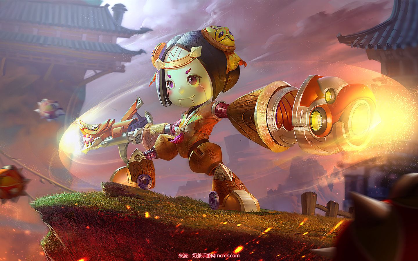 空中支援(大招):召唤河豚飞艇进行空中支援,持续14秒。河豚飞艇会照亮视野并投掷炸弹,对范围内的敌人造成物理伤害并减速,持续1秒。