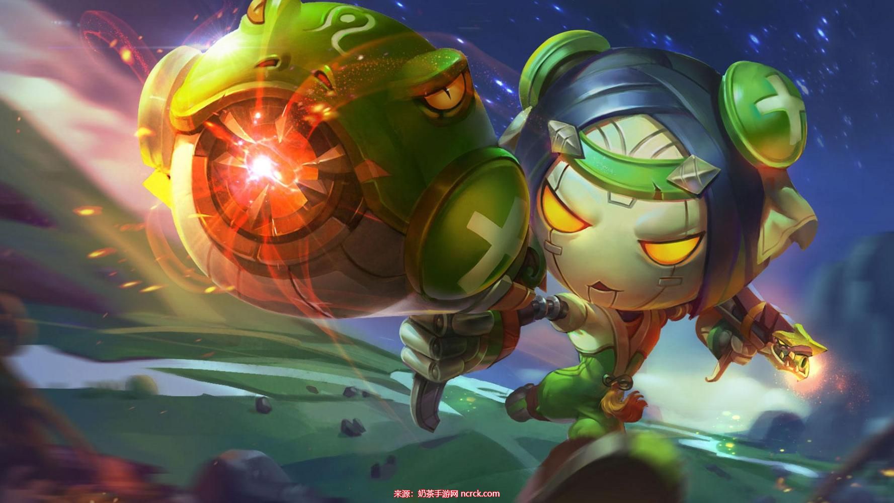 无敌鲨嘴炮(2技能):向指定方向发射火箭炮击退身前的敌人,命中英雄后造成物理伤害,并附带目标已损生命的法术伤害。