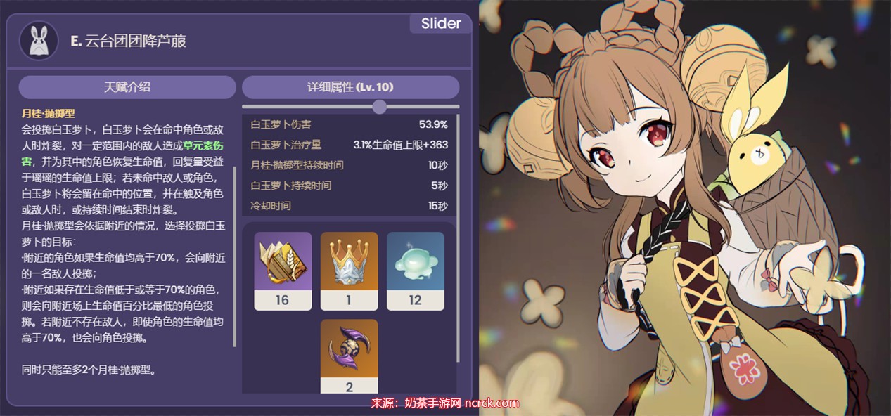 须弥新锻造长枪贯月矢是另一个可选的武器,它的副词条加精通,可以在角色周围产生苏生之叶,而满精通后捡起叶子的角色还能获得32%的攻击力加成。瑶瑶可以携带这把武器,配合海森等主C使用。此外,从外观上看,须弥新锻造长枪贯月矢与瑶瑶也非常搭配。不过需要注意的是,在实战中捡叶子的操作可能相对繁琐。