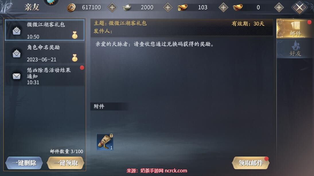 6、进入邮件页面后,点击"领取邮件",即可获得您的奖励。