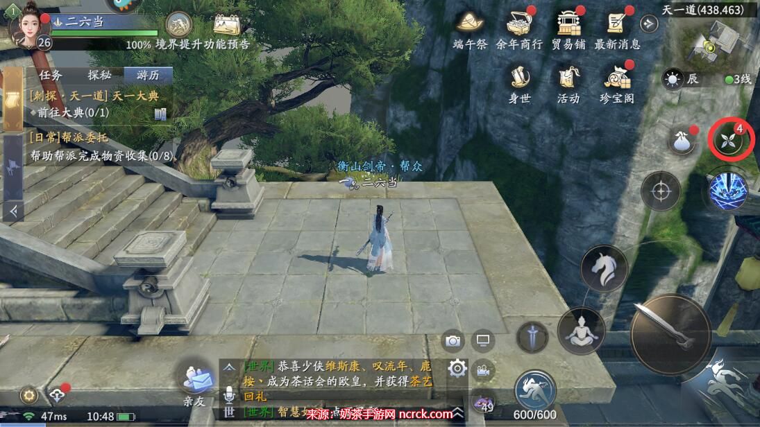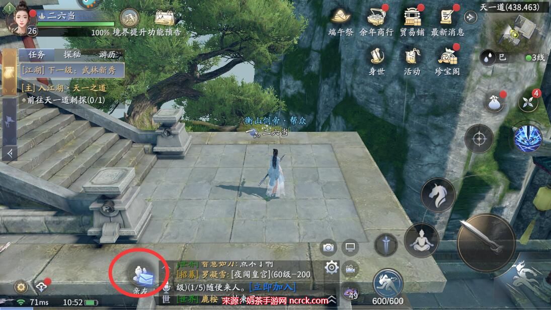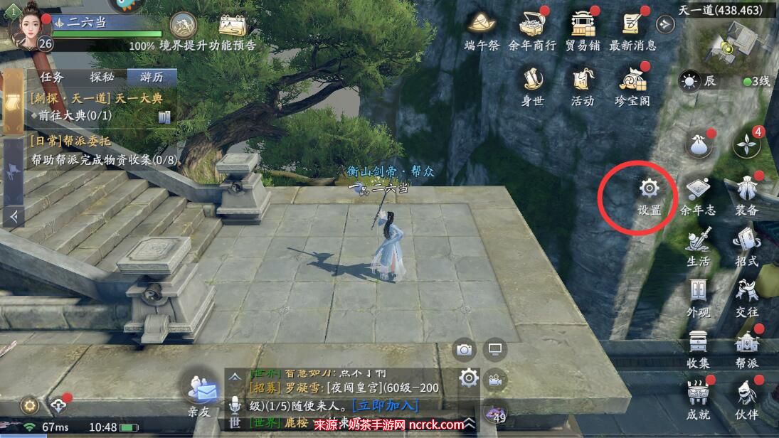 1、在庆余年手游主界面,点击右侧的菜单按钮。