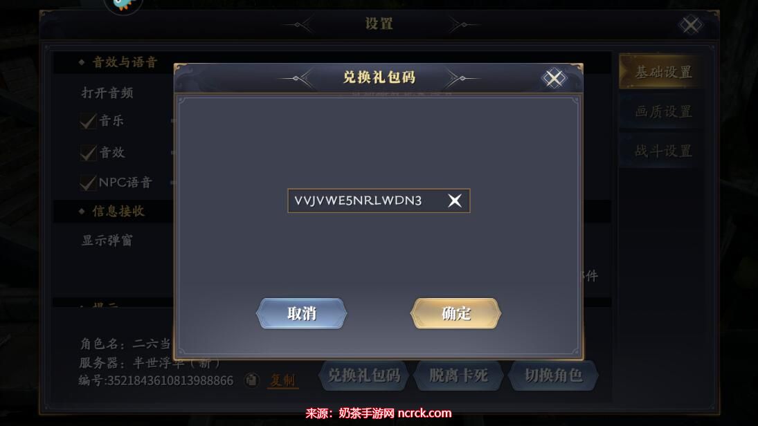 4、将获取到的礼包码粘贴到相应的输入框中。