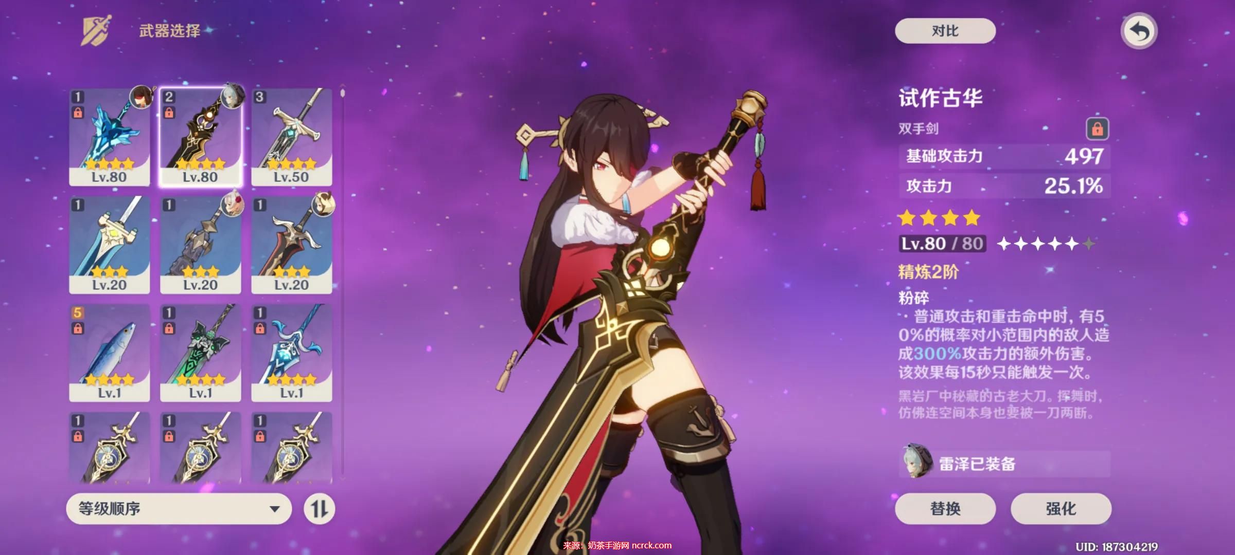 与螭骨剑类似,黑岩斩刀通过暴击伤害加成一定程度上减轻了圣遗物的压力。然而,它的精炼属性并不像螭骨剑那样通用,只有在面对多个敌人时效果较好。对于北斗作为主C,这是一个适合的选择。