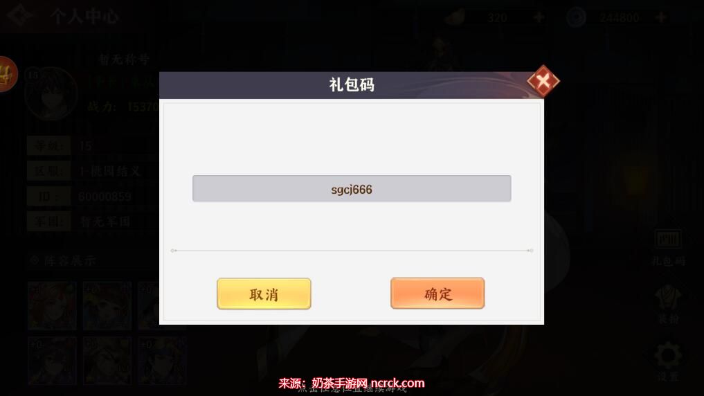 3、在弹出的输入框中,粘贴或手动输入小编为您提供的礼包码。