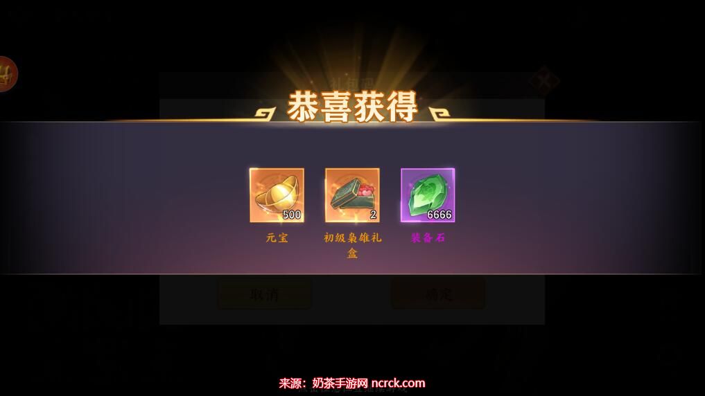 4、点击"兑换"按钮,即可领取装备石、元宝以及礼盒奖励。