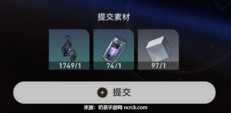 和NPC对话完后激活这样一个界面,我们可以根据任务面板显示的需求,提交相应的材料来换取奖励(星铁立本了属于是)