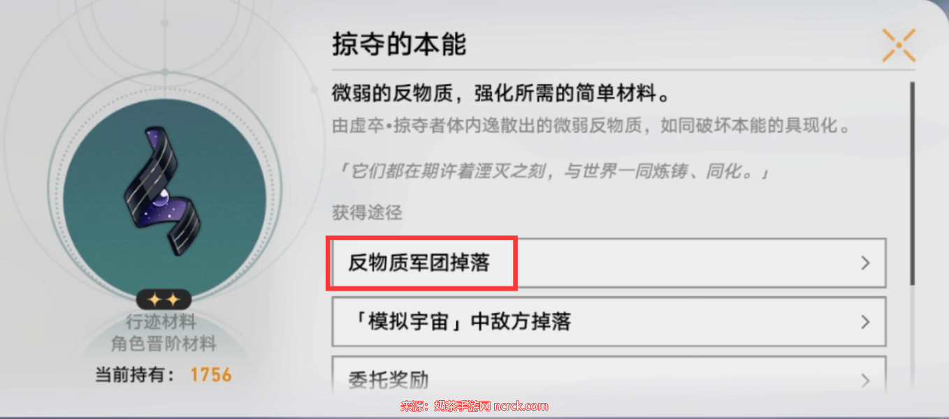 可在黑塔空间站·收容舱段击杀反物质军团敌人获取