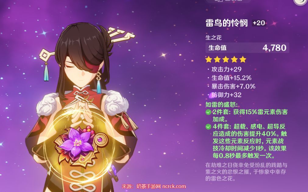 如雷套的二件套效果简单粗暴地为北斗提供了15%的雷伤加成。