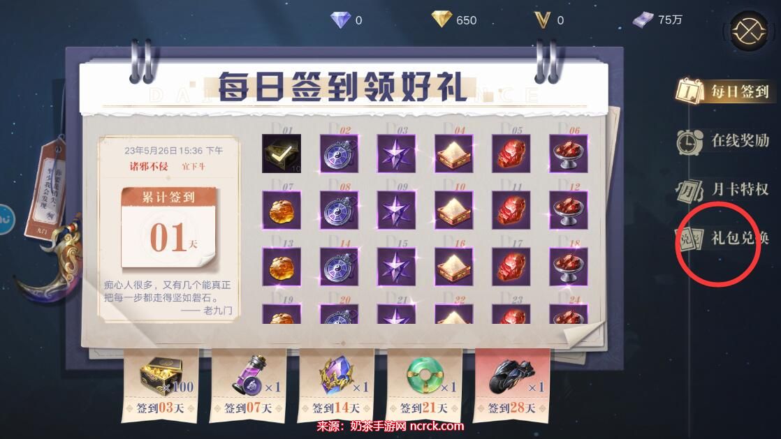 2、在福利界面中,寻找并点击"礼包兑换"按钮。