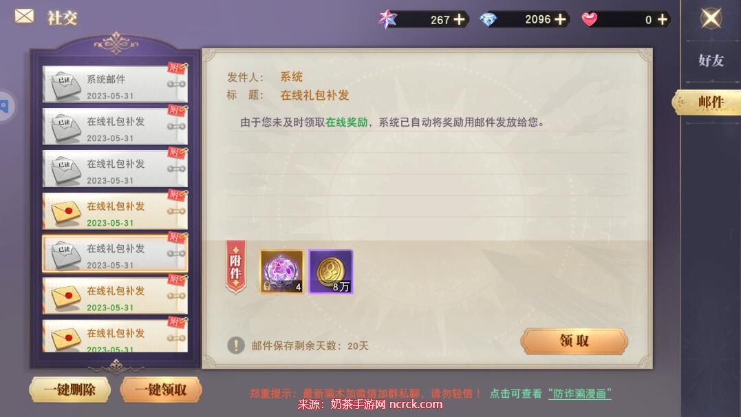 步骤六:在邮件界面中,点击一键领取,即可获得丰厚的奖励。