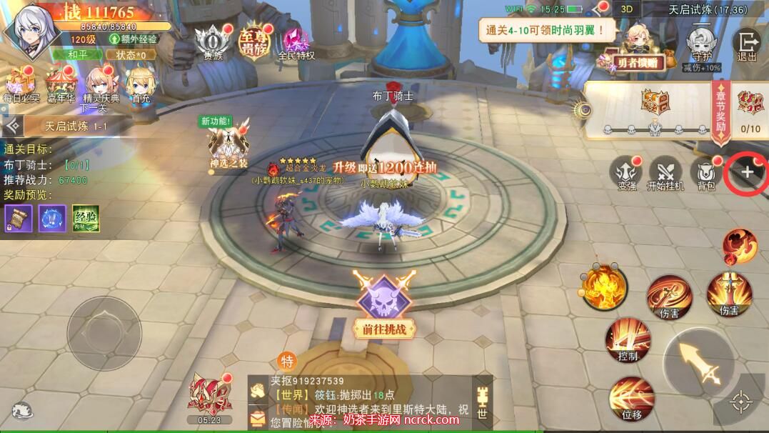 步骤一:进入游戏并返回蓝空幻想主界面,点击右侧的“+”号菜单。