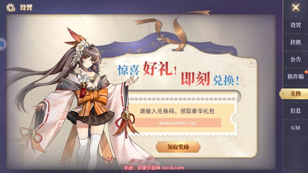步骤四:进入兑换界面后,输入你获得的兑换码