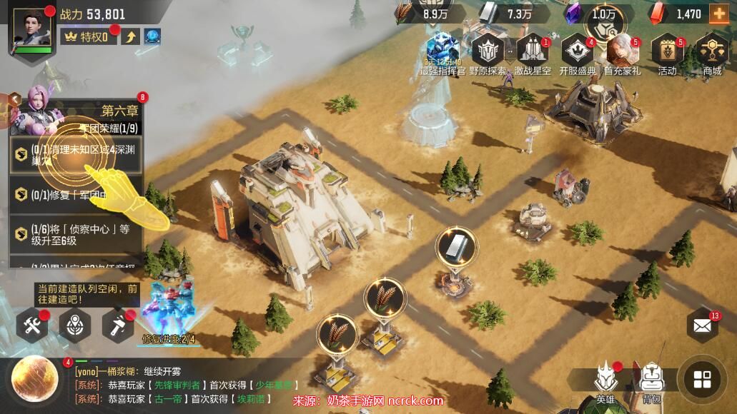 1、在星骸骑士游戏主界面,点击左上角的指挥官头像。